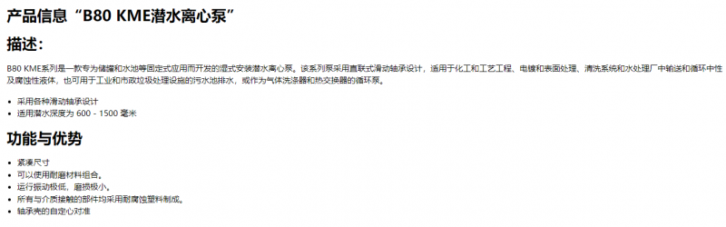 JESCO 潜水离心泵KME B80系列